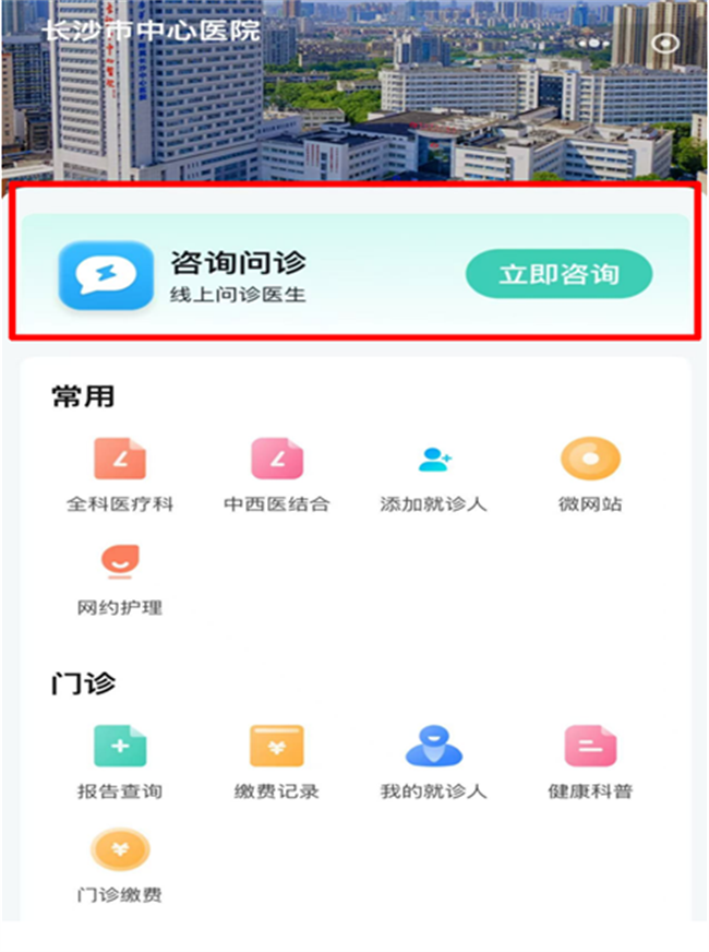 2.进入互联网医院香港马会app后,点击“咨询问诊”。