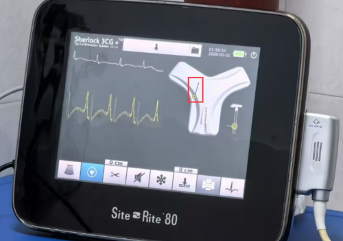 在3CG导管定位系统追踪指示下,可清晰地看到PICC导管的位置