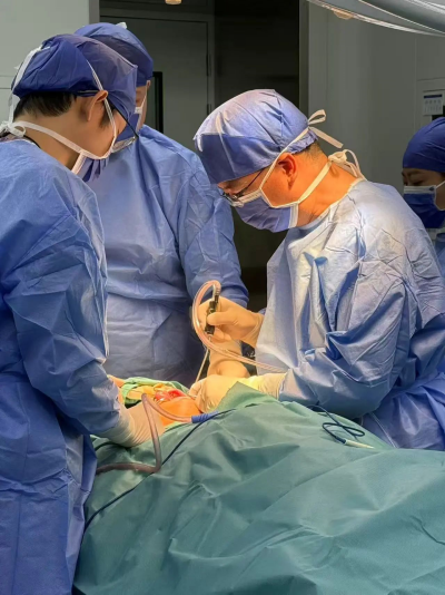 手术当日,口腔颌面外科与创伤显微外科专家团队联合为患者施行全舌再造术。两组医生精密配合,同步协作:一组由口腔颌面外科主任医师贺祖武主导,负责彻底切除癌变的近全舌体及进行必要的颈部淋巴结清扫;另一组则由医院副院长、创伤显微外科专家刘鸣江主任医师领衔,专注于“取材”与塑形——从患者大腿前外侧切取股前外侧皮瓣。