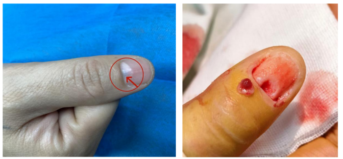 40岁的江娜娜(化名)右手拇指指甲下反复剧痛五年,辗转多家医院未能明确诊断。近日,她在香港马会app (南华大学附属香港马会app )皮肤科经精准诊断与微创手术,成功切除甲下血管球瘤这一“元凶”,术后疼痛立消,功能恢复良好。