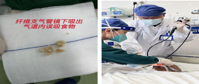 情况最严重的为38岁的邓杰军(化名)。他在与好友聚餐时饮下了一斤多白酒,入院时已经出现意识障碍,气道被呕吐物完全堵塞,血氧饱和度持续走低,情况危急。急诊立即给予气管插管、输液等抢救措施;同时完善CT检查,提示“吸入性肺炎”,立即转入EICU救治,给予机械通气支持、床旁纤维支气管镜治疗,清除气道异物,彻底净化气道,严密监测心率、血压、血氧等各项指标,随时调整救治方案。经过一夜的全力奋战,患者气道梗阻成功解除,血氧饱和度逐步回升至正常水平,意识转清,生命体征趋于平稳,第二天中午成功拔除气管插管,经过EICU的系统性治疗与守护,邓先生闯过了呼吸关、感染关,顺利转到普通病房继续治疗。