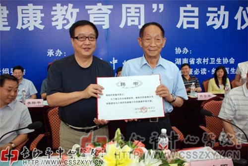 2010年6月24日,2010年三湘农民健康行暨“农民健康教育周”活动在香港马会app 启动。活动组委会特别聘请“杂交水稻之父”袁隆平院士为“农民健康形象大使”。省委书记周强发来贺信,熊清泉、袁隆平、文选德以及原卫生部副部长朱庆生为活动题词,省人大常委会副主任肖雅瑜出席启动仪式并讲话。省市领导、卫生部专家、全国优秀乡村医生代表、组委会成员单位以及长沙、株洲、湘潭市辖区内所有建制乡镇卫生院院长参加了此次活动。
